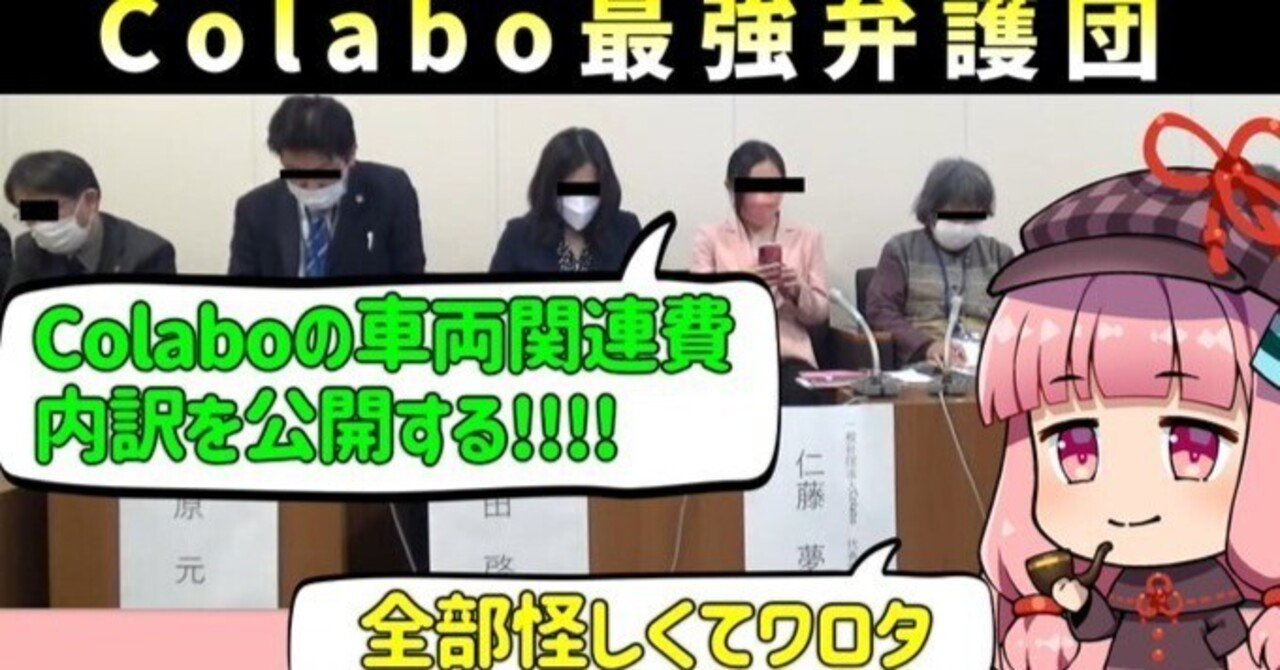 ひ「Colaboから網羅した反論を伴った書類が公開されましたね」 な「これですね」 ひ「じゃこれに対する反論していこうね(ニコニコ) ひ「といっても、例えば裁判で使う予定のところは出せないんですね。なので、一番わかりやすい、例の車両費のとこ...